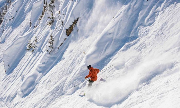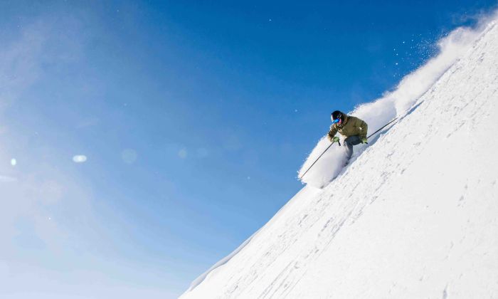 Blue skies and fresh fluffy snow make for exceptional skiing conditions.